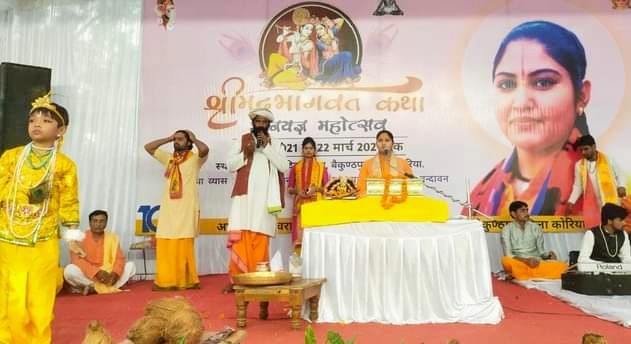 यह कथा 15 मार्च से प्रारम्भ होकर 22 मार्च तक चलेगी। जिसमें कथा व्यास पूज्य देवी सुश्री मानस माधुरी मधु पाठक  श्री धाम वृंदावन जी के द्वारा कथा वाचन किया जायेगा। विशाल कलश यात्रा के पश्चात उत्साहपूर्ण व भक्तिमय वातावरण मे श्रीमद्भागवत कथा ज्ञान महोत्सव का शुभारंभ प्रेमा बाग मंदिर परिसर बैकुंठपुर में हो गया है।