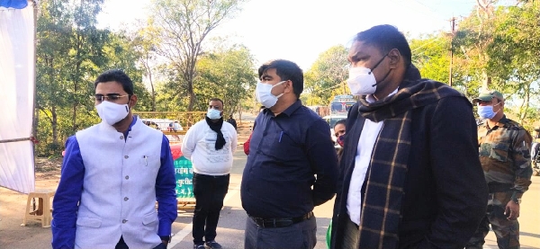 बैकुंठपुर/ कलेक्टर कुलदीप शर्मा एवं पुलिस अधीक्षक  प्रफुल्ल ठाकुर व सीईओ जिला पंचायत कुणाल दुदावत ने आज अंतरराज्यीय बैरियर घुटरीटोला में अवैध धान आवक की जांच और कोविड कांटेक्ट ट्रेसिंग का निरीक्षण किया। कलेक्टर ने बैरियर में तैनात परिवहन, आबकारी, वन और पुलिस के जवानों को अवैध धान परिवहन की जांच और कार्यवाही की जानकारी लेकर ज़रूरी दिशा-निर्देश दिए।