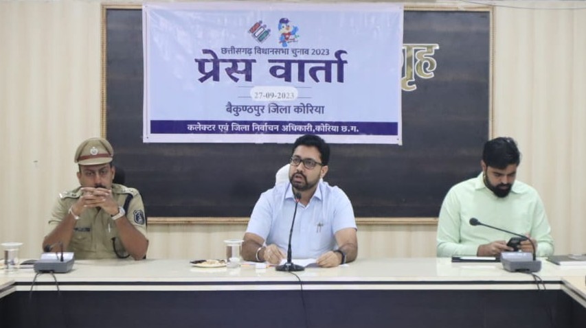 बैकुंठपुर (कोरिया) / जिला निर्वाचन अधिकारी एवं कलेक्टर विनय कुमार लंगेह, पुलिस अधीक्षक त्रिलोक कुमार बंसल, जिला पंचायत के मुख्य कार्यपालन अधिकारी डॉ. आशुतोष चतुर्वेदी ने आज कलेक्ट्रेट सभागृह में जिले के वरिष्ठ मीडिया कर्मियों के साथ आगामी आम निर्वाचन के संबंध में बैठक लेकर निर्वाचन आयोग के निर्देशों सहित विभिन्न मुद्दों पर विचार-विमर्श किया। जिला निर्वाचन अधिकारी व कलेक्टर श्री लंगेह ने कोरिया जिला स्थित बैकुण्ठपुर तथा भरतपुर-सोनहत विधानसभा से संबंधित जानकारियों को पत्रकारों के साथ साझा किया।