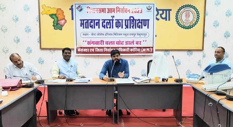 बैकुंठपुर (कोरिया)/ विधानसभा निर्वाचन में संलग्न मतदान दल कार्य के लिए आवश्यक है कि सभी अधिकारियों और कर्मचारियों को पूरी तरह से मतदान प्रक्रिया पूर्ण कराने की जानकारी हो। इसके लिए कलेक्टर एवं जिला निर्वाचन अधिकारी कोरिया विनय कुमार लंगेह के निर्देशानुसार सभी अधिकारी कर्मचारियों का क्रमशः प्रशिक्षण कराया जा रहा है। इस अनुक्रम में मतदान दल गठन के लिए अतिरिक्त कर्मचारियों की आवश्यकता के अनुसार सभी को लगातार प्रशिक्षित किया जा रहा है। आज जिला पंचायत के मंथन कक्ष और आडिटोरियम में मास्टर ट्रेनर ने उपस्थित अतिरिक्त शासकीय कर्मचारियों को मतदान केंद्रों में जिम्मेदारी के लिए प्रशिक्षण प्रदान किया।