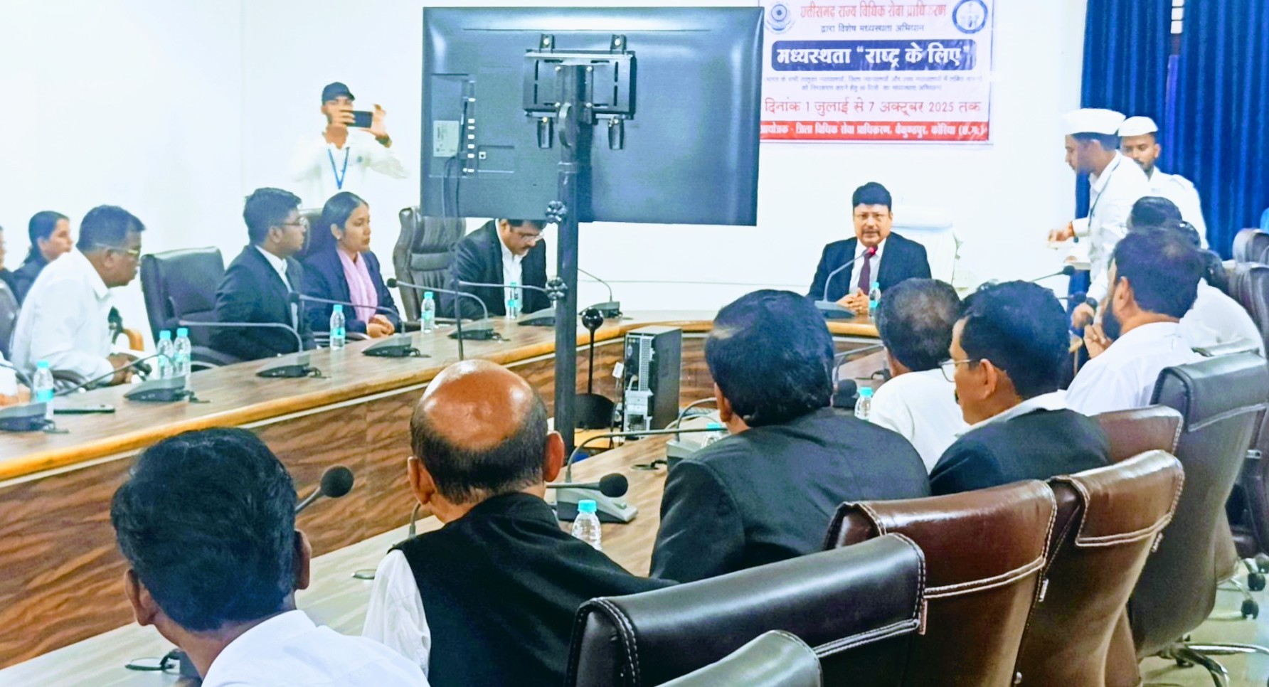 बैकुंठपुर (कोरिया) 10 जुलाई 2025/ राष्ट्रीय विधिक सेवा प्राधिकरण एवं मध्यस्थता एवं सुलह परामर्श समिति (एम०सी०पी०सी०) नई दिल्ली के मार्गदर्शन में तथा छ०ग० राज्य विधिक सेवा प्राधिकरण बिलासपुर के निर्देशानुसार प्रधान जिला न्यायाधीश /जिला विधिक सेवा प्राधिकरण के अध्यक्ष श्री शैलेश कुमार तिवारी ने ‘मध्यस्थता राष्ट्र के लिए अभियान के अंतर्गत न्यायालय में लंबित प्रकरणों को मध्यस्थता के माध्यम से निराकरण हेतु अधिवक्ता संघ बैकुण्ठपुर के साथ बैठक की।